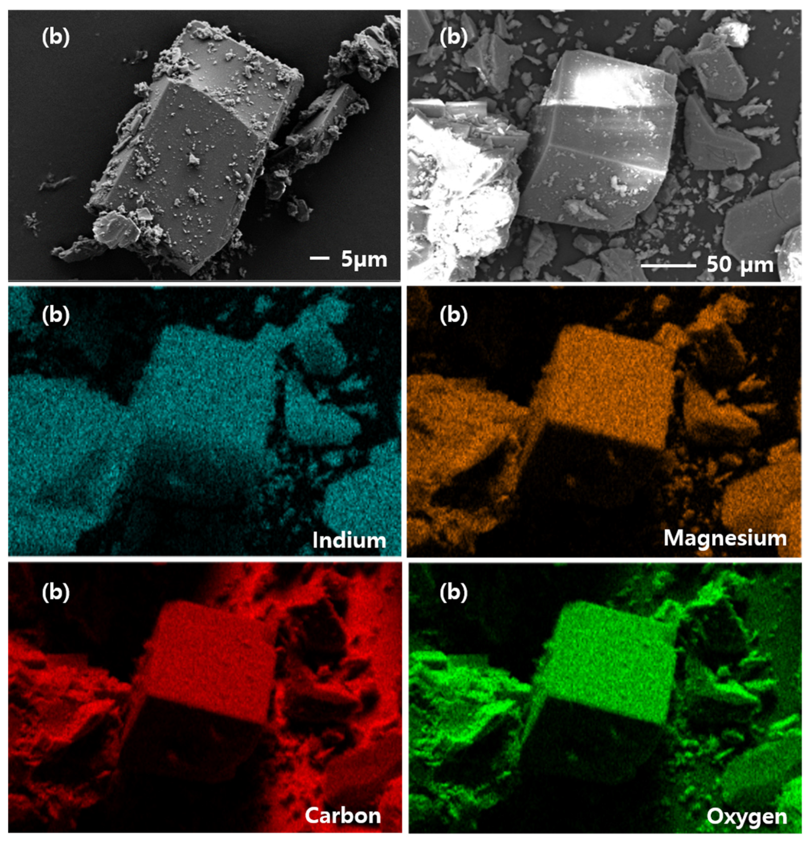 Figure 2 show SEM-EDS images of the synthesized CPM-200-In and CPM-200-In/Mg samples. The SEM images reveal that both CPM-200s have cubic like structures. As a result of EDS mapping, only In metal was observed in CPM-200-In, while In and Mg metals are well distributed in CPM-200-In/Mg.