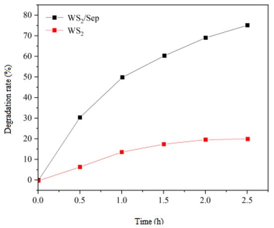 Photocatalytic activity of the WS2/Sep composite and pure WS2.