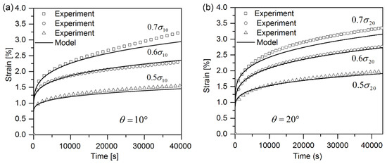 The parameters in Equation (11) are listed in Table 2. The time-independent initial strains in Equation (1) under a constant stress can be obtained as