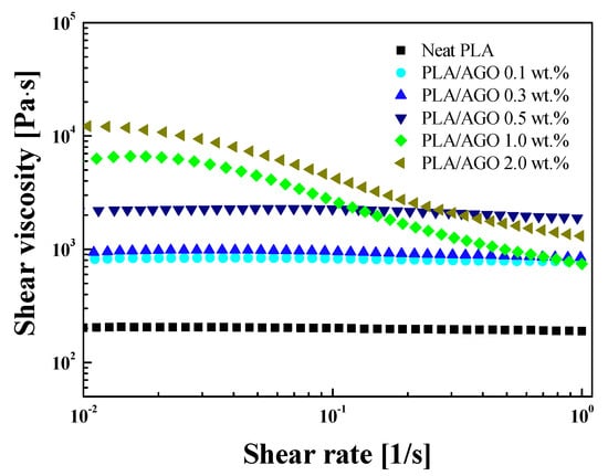 Shear viscosity curves of PLA/AGO nanocomposites at a constant temperature.