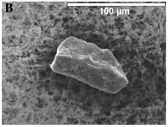 Since the surface structure affects the overall surface area, it also affects the sorption and interaction abilities of particles. For this purpose, standard optical microscopic images alone do not suffice in analysis, as they do not accurately show the detailed topography of the surface, such as the cracks and edges of the particle [,,]. Even though it is possible to obtain an idea of the surface morphology of particles using standard optical microscopic images [], it is usually not the focus when MP characterisation is conducted with an optical microscope [,]. A more suitable imaging method is scanning electron microscopy (SEM), as it has a large depth of focus that produces images which can depict three-dimensional structures []. Ter Halle et al. (2016) used SEM, as seen in Figure 1, not only to investigate the shape and surface morphology of environmental microplastic particles, but also to measure particle sizes [,]. For this purpose, SEM is being used less often with the increasing use of optical microscopes.