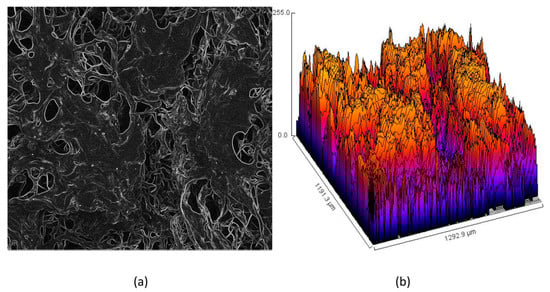 Appropriate morphology of the material used as a potential transdermal patch is crucial for several reasons. The structure should be highly porous [,,,]. Importantly, there are many bioinert and biocompatible polymeric devices which could be potentially applied for drug delivery, but because of their very low porosity or even solid character cannot be used for this purpose. Figure 5a shows SEM microphotograph of the unmodified hydrogel. It can be noticed that it has open-pores structure and very high surface area. The pores created interconnected channels which will enable water permeability as well as possibility of biomolecules migration []. Such extensive 3D network gives possibility of high amount of various solutions sorption. The pores edges are mild and of petal-like shape and their average size is 100–150 µm. Figure 5b shows TEM microphotograph of the prepared ZnO particles. It may be observed that all of them are in the nano size and below 100 nm. Their shape is round or slightly cubical with 20 nm average diameter. No sharp edges are visible which could potentially irritate skin after placing. No additional substances or residues are visible in the picture. Noteworthy, the results correspond to the data given in Figure 3 and previously reported data []. Figure 5c shows SEM microphotograph of the sample modified with ZnO NPs. It can be observed that the NPs are homogeneously distributed inside polymeric matrix and the surface of the material is uniform and not degraded. Figure 5d shows XRF spectrum of the sample surface showing its elemental composition. There are three main elements present, namely carbon, oxygen, and zinc, which proves the purity of the prepared sample as well as the presence of the ZnO NPs in the material. Figure 6 provides details of the lyophilized hydrogel structure (curvature (Figure 6a) and roughness (Figure 6b)). The lyophilized samples before swelling are characterized by a high curvature (average 0.33 μm−1). Moreover, their surface is well-developed and of three-dimensional, spacious architecture. Such roughness should provide good adhesion to patients’ skin and is also responsible for good swelling abilities and drug loading capacity.