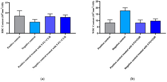 At the time of sacrifice, all the animals were subjected to blood collection to measure hematological parameters. A retro-orbital puncture was used to collect blood. The above parameters were studied to learn more about the effects of CUR and 5-FU individually and in combination on the following specific blood components: