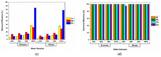 FAAS was used in batch experiments to determine the heavy metal concentrations. The samples were atomized using an atomic absorption spectrophotometer AAS Spectra AA110 (Varian, Australia) in a flame of air and acetylene. The analysis method closely followed the protocol described in detail in the standard SR ISO 8288/2001. In brief, the samples were digested in nitric acid, and five-point calibration curves were drawn for each metal, with the range of concentrations between 0.05 mg L−1 and 0.4 mg L−1 for Cd, and between 0.25 mg L−1 and 2.50 mg L−1 for Pb. Dilutions were made for samples that had concentrations exceeding the intervals previously mentioned. The reference material used for standard preparation (for the calibration curves) was 1000 mg L−1 Spectro Econ Chem Lab Stock Solution (Chem Lab, Zedelgem, Belgium), while 1000 mg L−1 Merck Stock Solution (Merck KGaA, Darmstadt, Germany) was used for quality control. The method’s detection limits were 0.03 mg L−1 for Cd and 0.25 mg L−1 for Pb.