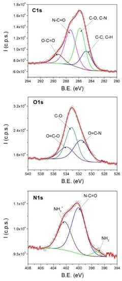 The total surface area (St), pore volume (Vp), and pore radius (Rm) of N2 adsorption–desorption isotherms (recorded at −196 °C) were determined using the Brunauer–Emmett–Teller (BET) technique for measuring St, and the Dollimore–Heal model. A Sorptomatic 1990 device (Thermo Electron Corporation, Waltham, MA, USA) was used to record the isotherms. Prior to analysis, samples were degassed at 70 °C for 5 h at a pressure of 1 Pa to eliminate any physisorbed contaminants from the surface.