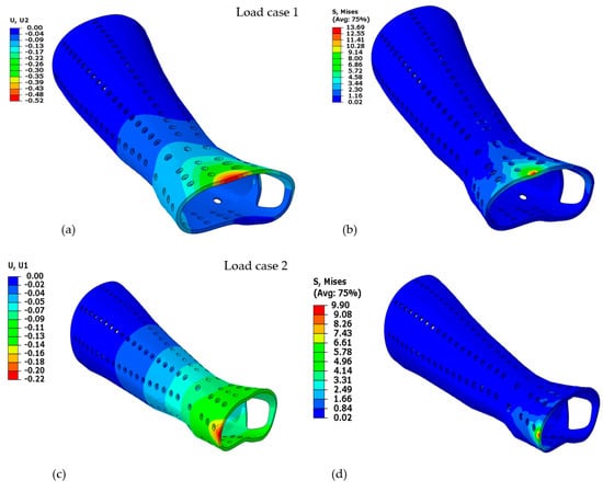 AM or 3D printing systems are a viable alternative methods for manufacturing these intricate orthopedic devices. They have opened up fresh possibilities for producing intricate shapes with undercuts or cavities and for minimizing waste []. The porous/perforated designs, or the topology optimization process and 3D printing, when integrated, allow professionals endless options and expand the range of potential solutions for the development and production procedure. The orthoses made by AM can give patients individualized rehabilitative tools, leading to a more appealing design, reduced weight, and reduced volume, as well as better airflow, all of which have a good effect on the patient’s usage of the product [,]. Additionally, it is critical to perform initial analyses on orthoses to estimate their strength and to confirm that the right material is being used and the perforations are suitable before producing on AM [].