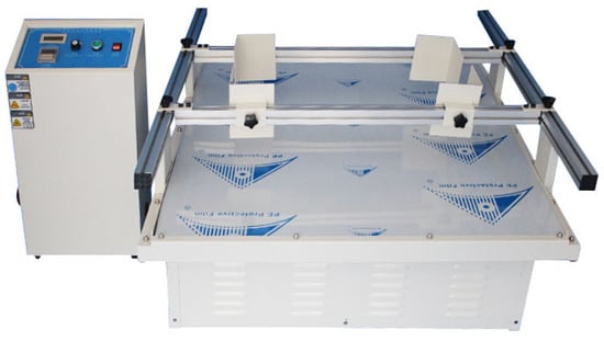 The test conditions for the vibration test of combined wheeled vehicles are shown in Table 2. The vibration test of combined wheeled vehicles simulates the vibration situation during transportation on national highways of third and fourth levels. According to the test conditions in Table 2, the transportation mileage of the simulated Class III and IV national roads reached over 400 km.
