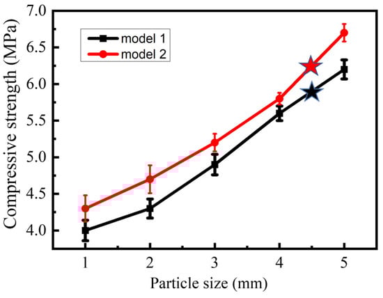 The effect of soil particle size on compressive strength of consolidated soil columns. The black star represents the compressive strength of sample 6; The red star represents the compressive strength of sample 12.