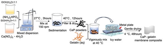 2.2. Fabrication of the CaP–Gelatin Lamellar Membrane