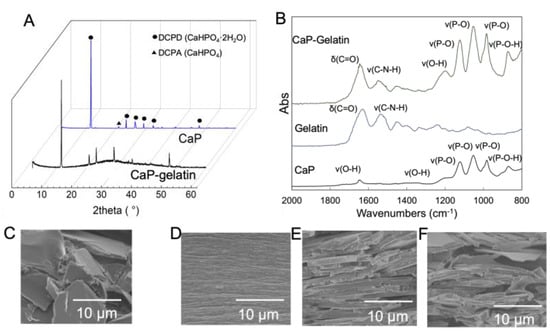 2.3. Physico-Chemical and Mechanical Characteristics of the CaP–Gelatin Composite