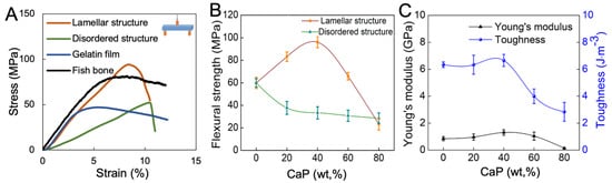 3.3. Fabrication of a CaP–Gelatin Membrane with Lamellar Structure