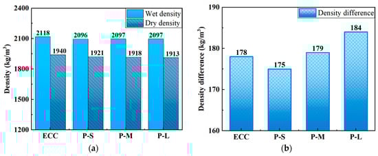 The density of P-ECC: (a) wet density and dry density, (b) density difference.