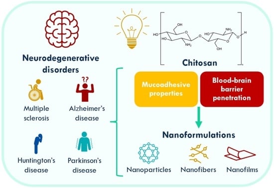- Vahab, S.A.; Ki, A.; M, S.; Kumar, V.S. Exploring Chitosan Nanoparticles for Enhanced Therapy in Neurological Disorders: A Comprehensive Review. Naunyn. Schmiedebergs. Arch. Pharmacol. 2025, 398, 2151–2167. [Google Scholar] [CrossRef]