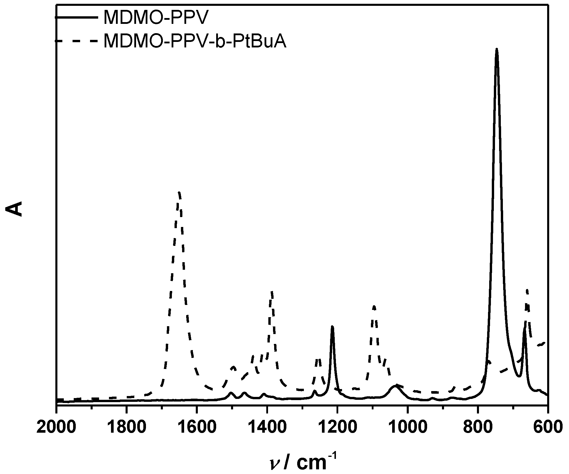 ATR FT-IR spectra for MDMO-PPV and MDMO-PPV-b-PtBuA.