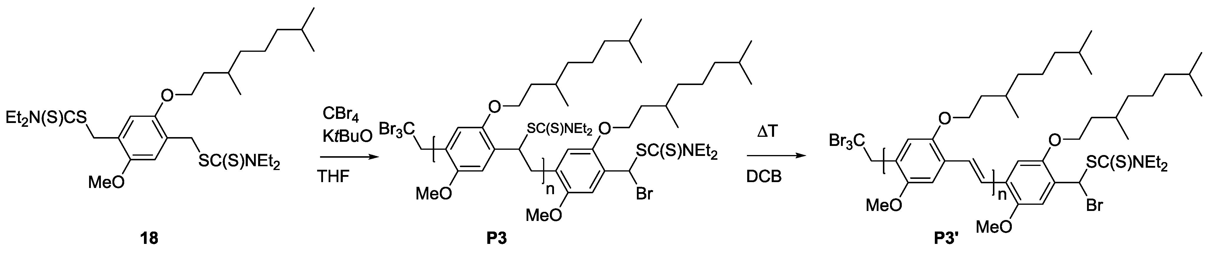 2.5.4. General Method for the Elimination of Bromine-Functionalized MDMO (P3') DTC PPV