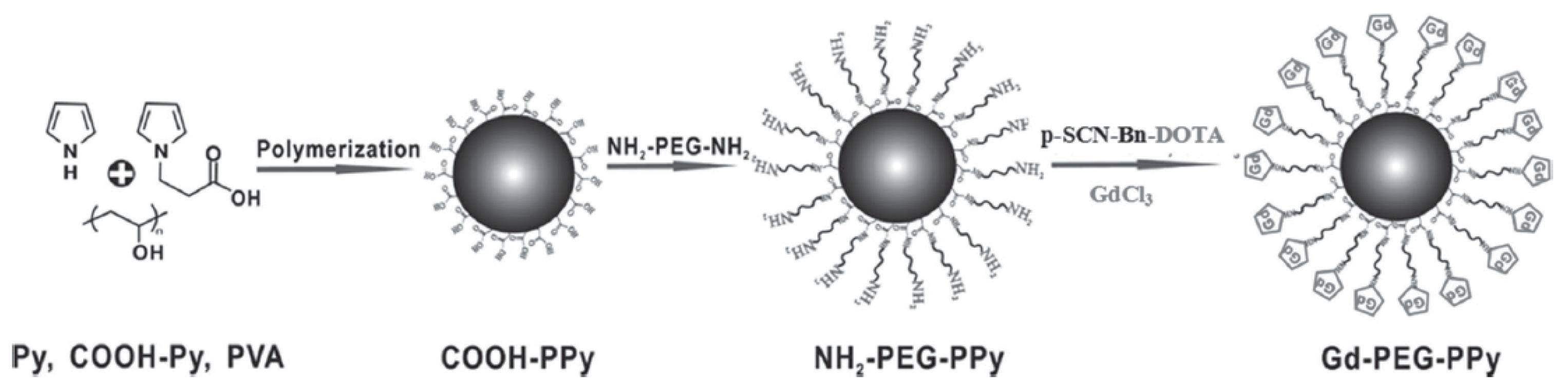 Schematic illustration of the fabrication process of Gd-PEG-PPy NPs. Reproduced with permission from [123].