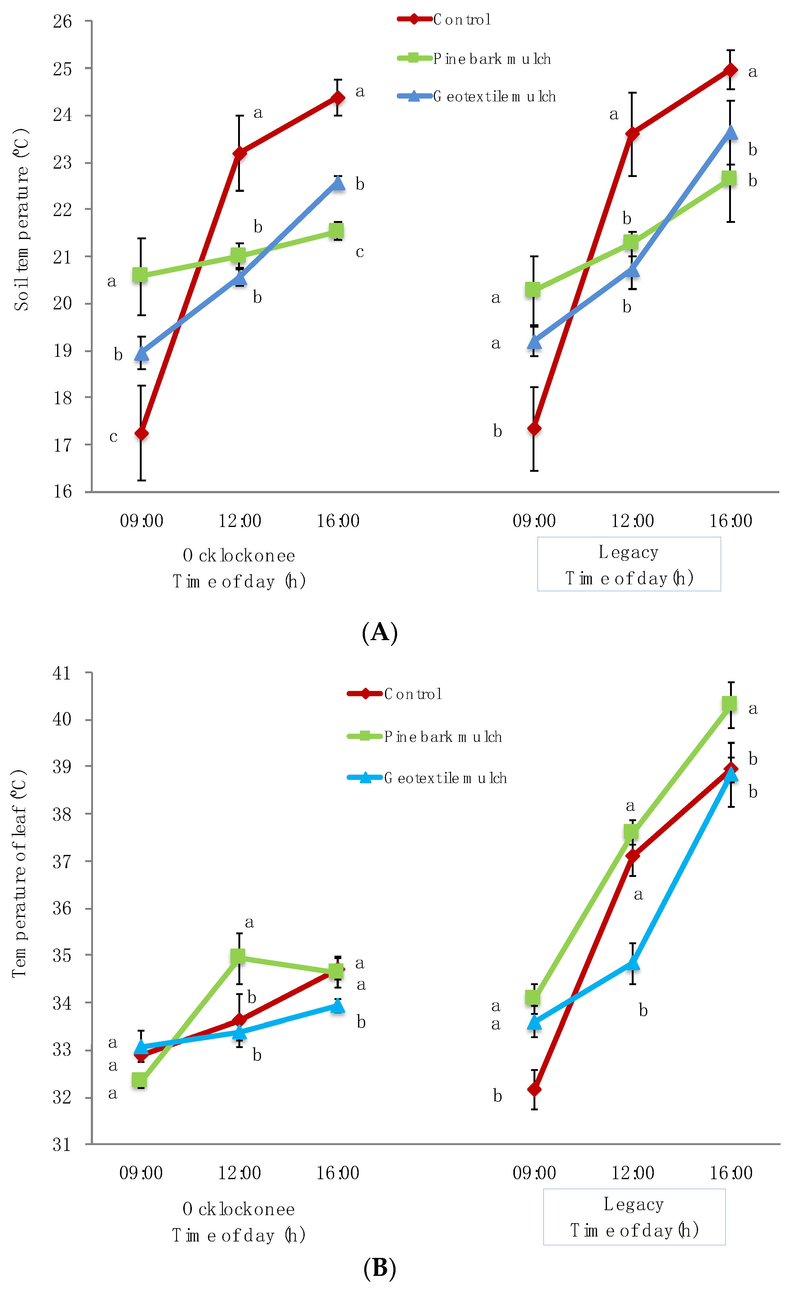 | (C) | ETR | Pine bark mulch | 82.20 b | 84.62 a | 53.17 a | 83.32 b | 88.23 a | 43.74 a |