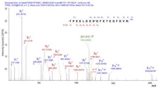 2.5. LC-MS/MS Analysis of Enriched Phosphopeptides