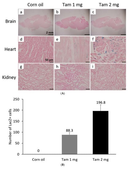 2.2. Crossing of F1A-CreERT2 and ROSA26 Mice for Tracing the Activity of F1A-Promoter by LacZ Staining Assay
