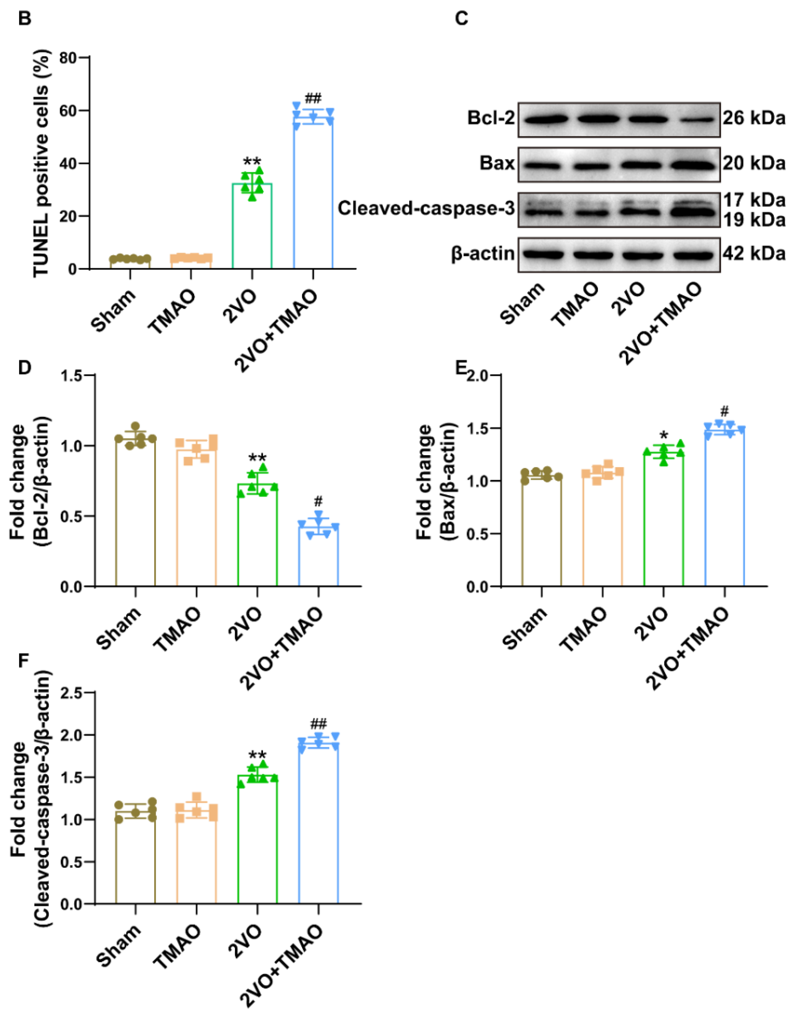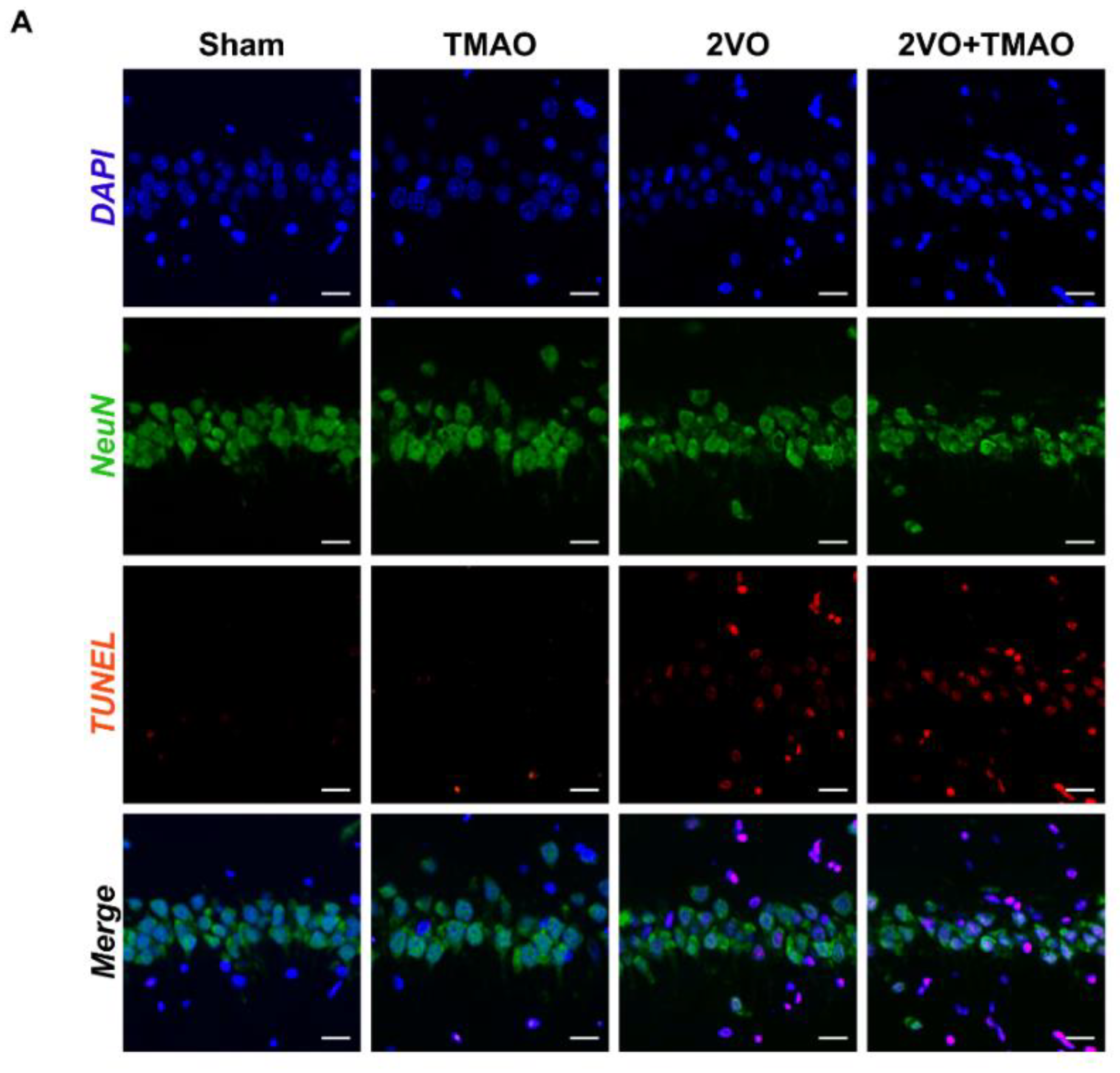 3.4. TMAO Induced Neuronal Apoptosis within 2VO Rats