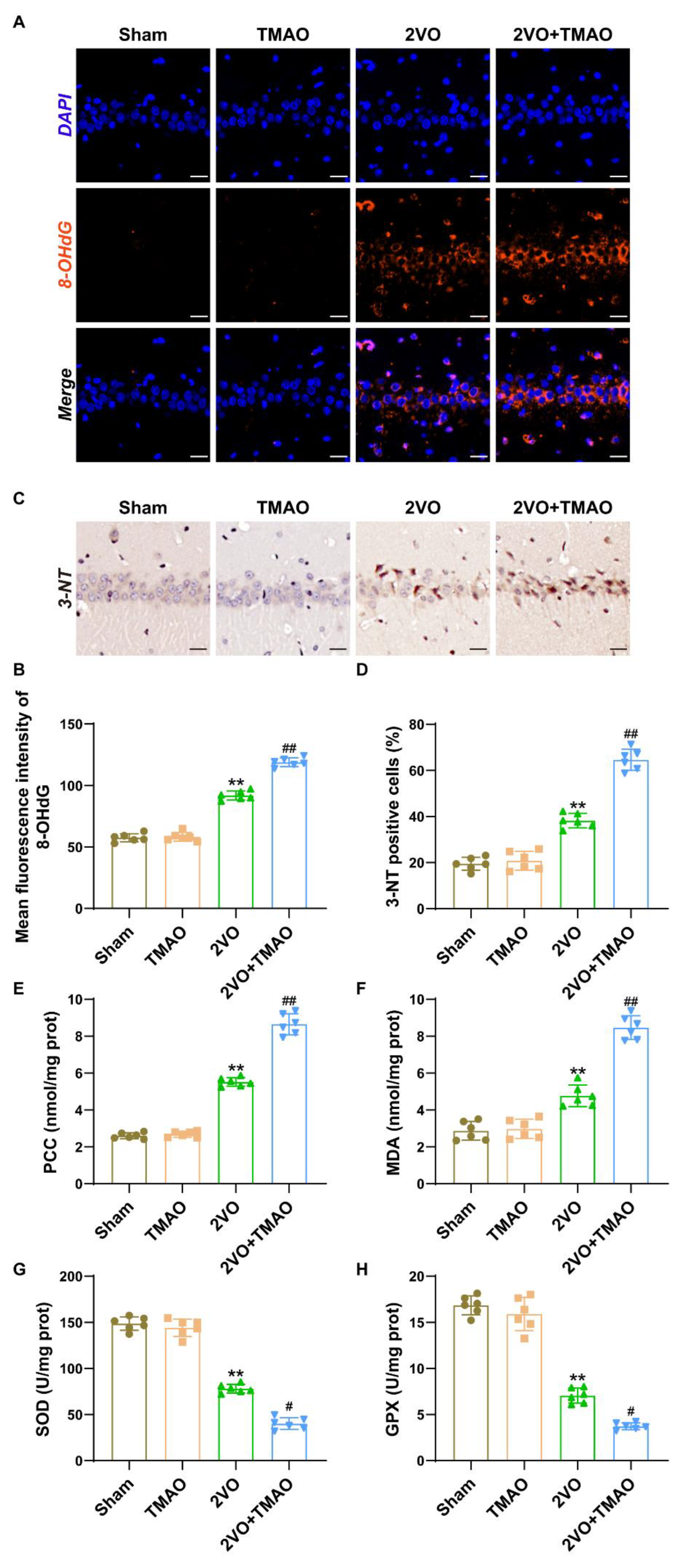 3.5. TMAO Promoted Hippocampal Oxidative Stress within 2VO Rats