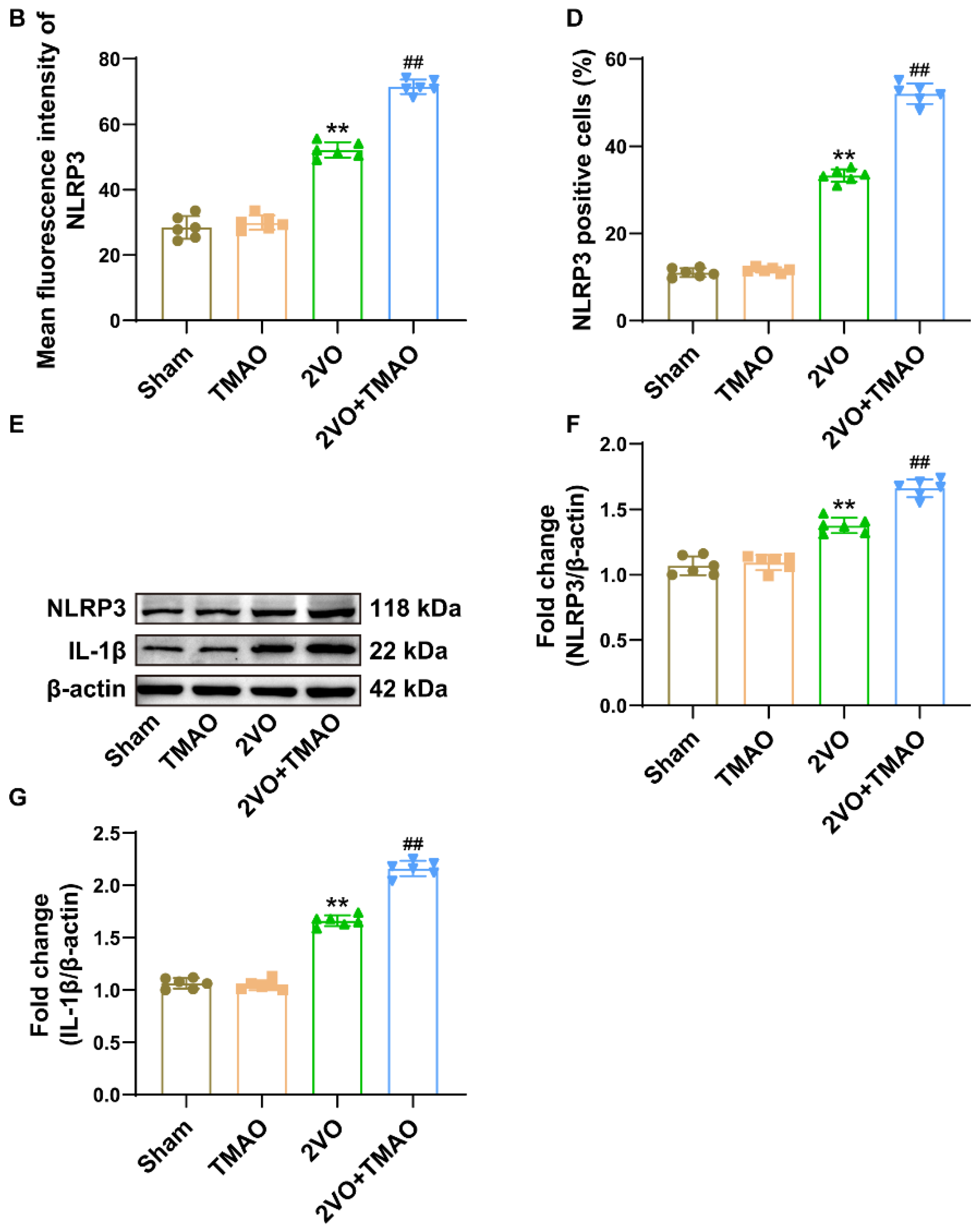 3.6. TMAO Drove Hippocampal NLRP3 Inflammasome Activation within 2VO Rats