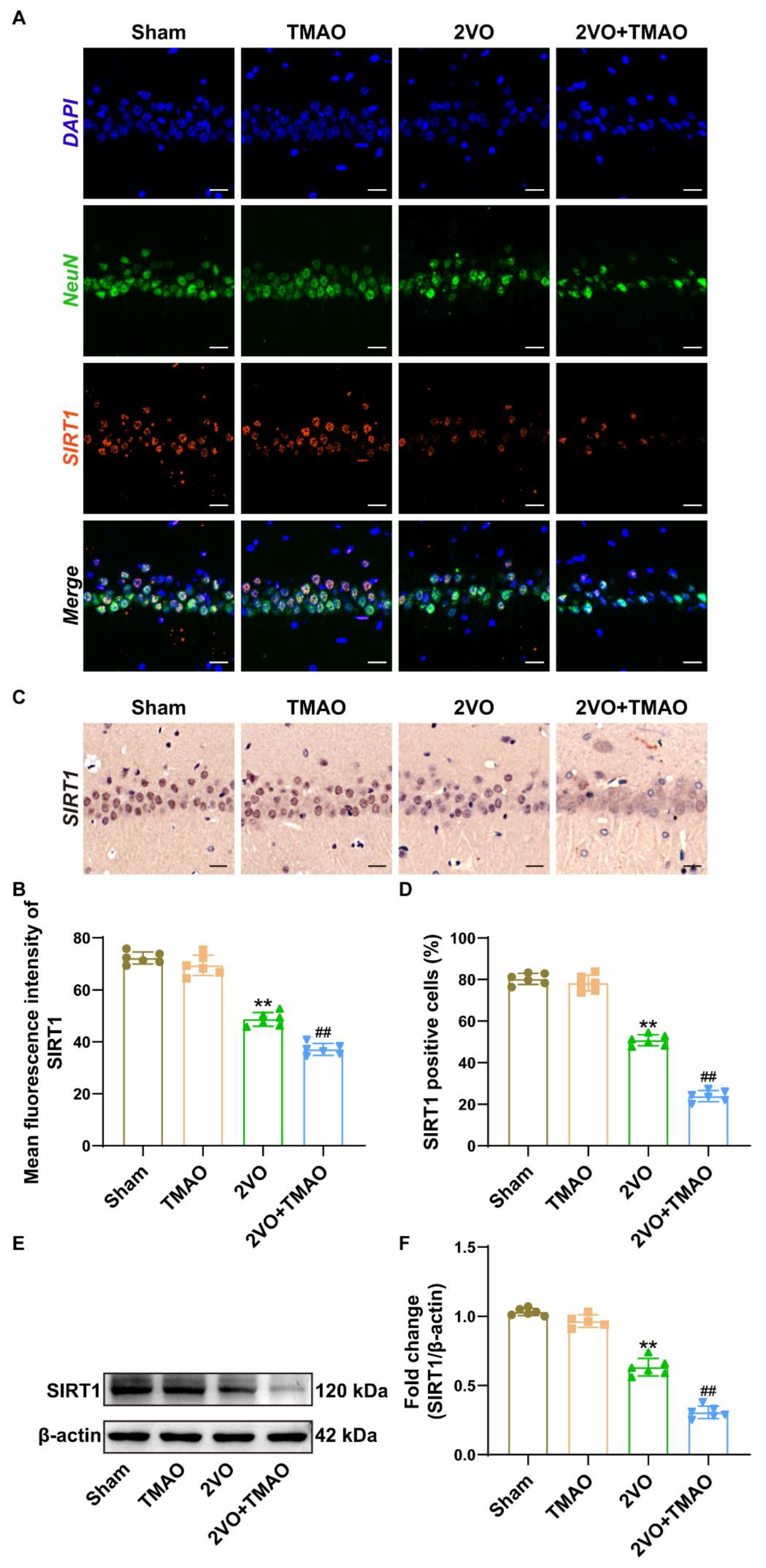 3.7. TMAO Decreased Hippocampal SIRT1 Expression within 2VO Rats
