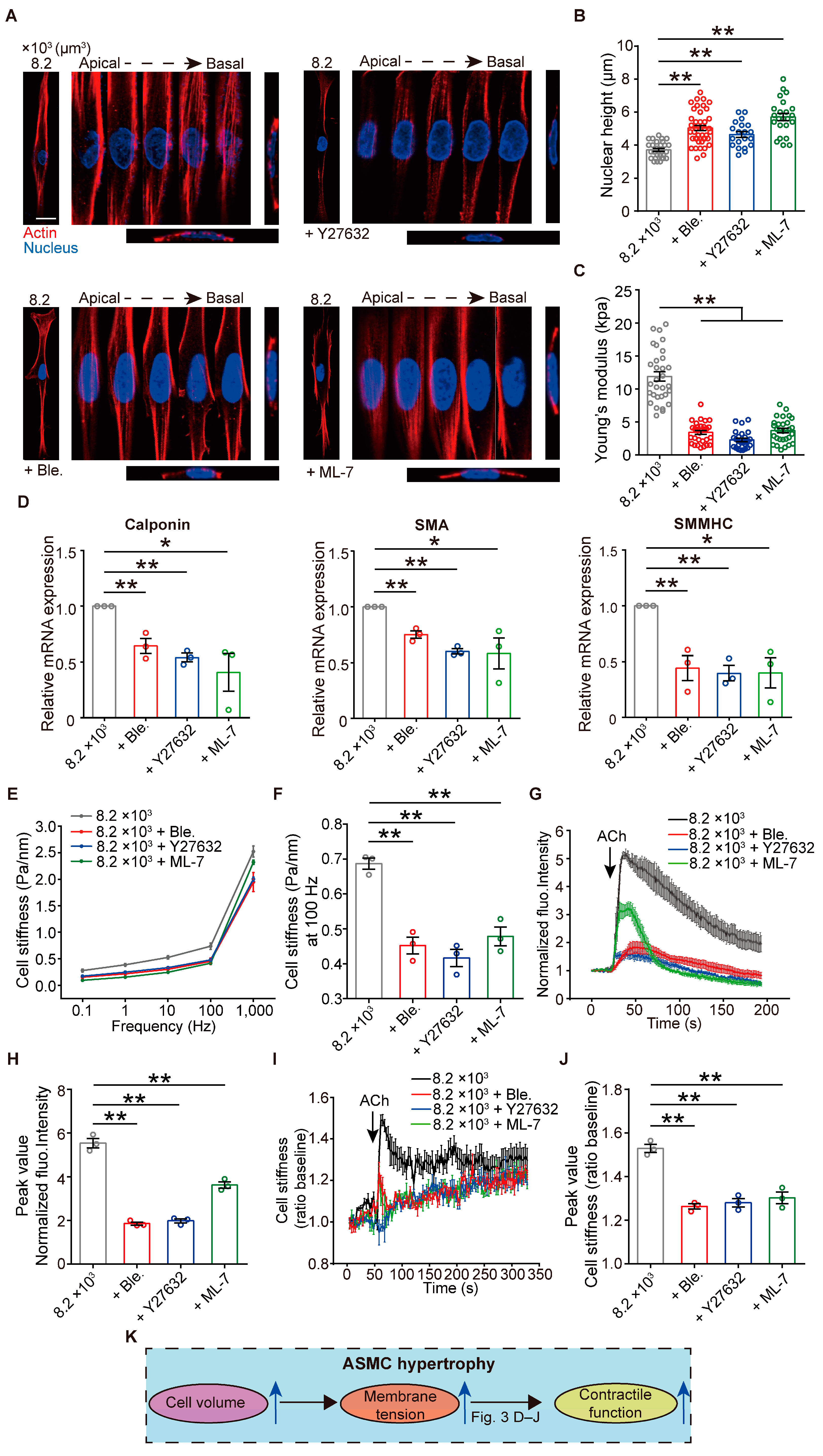 3.1. Increase in Cell Volume Promotes Contractile Function of ASMCs