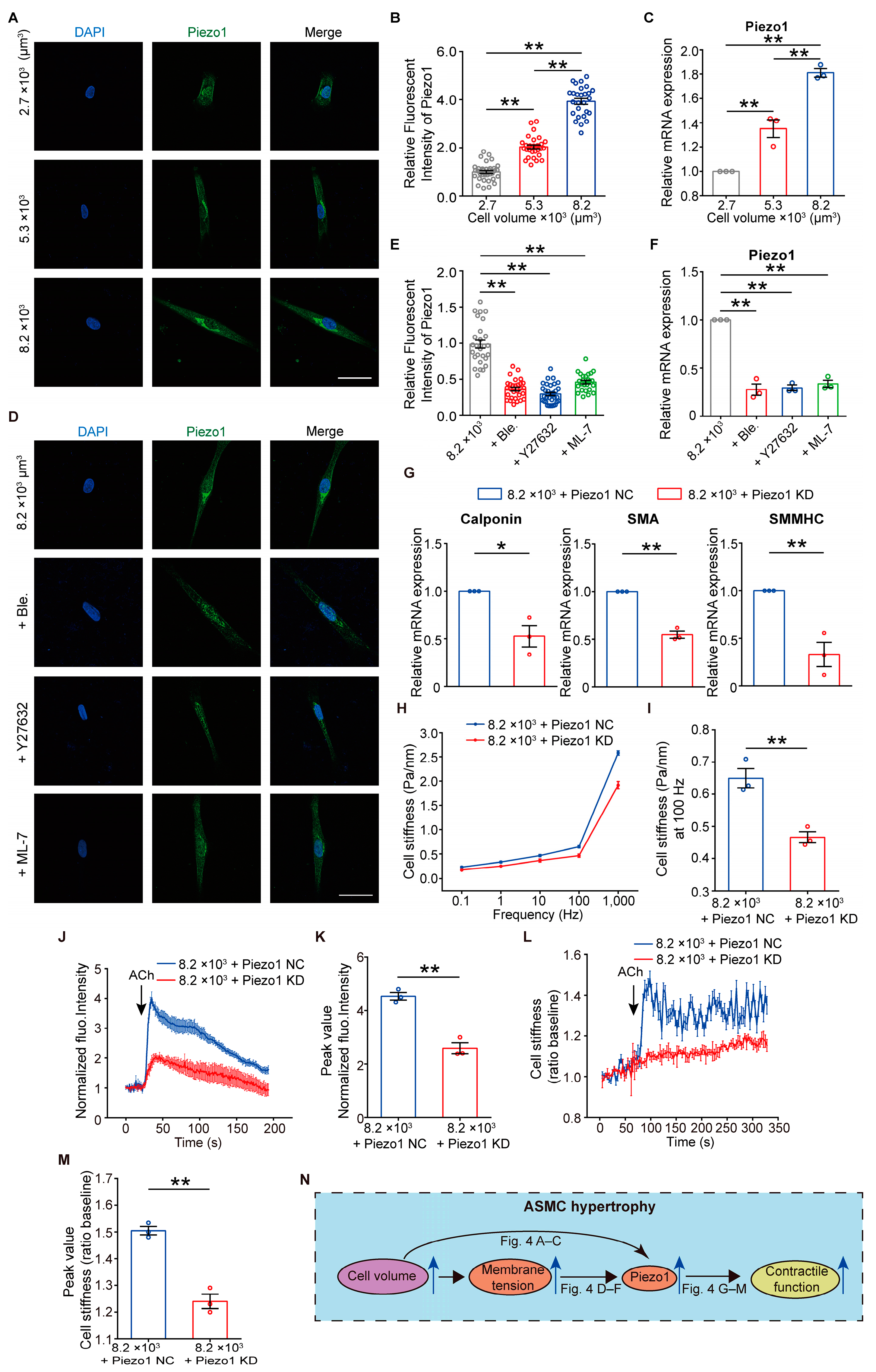 3.4. Piezo1 Mediates the Cell Volume-Regulated Contractile Function of ASMCs
