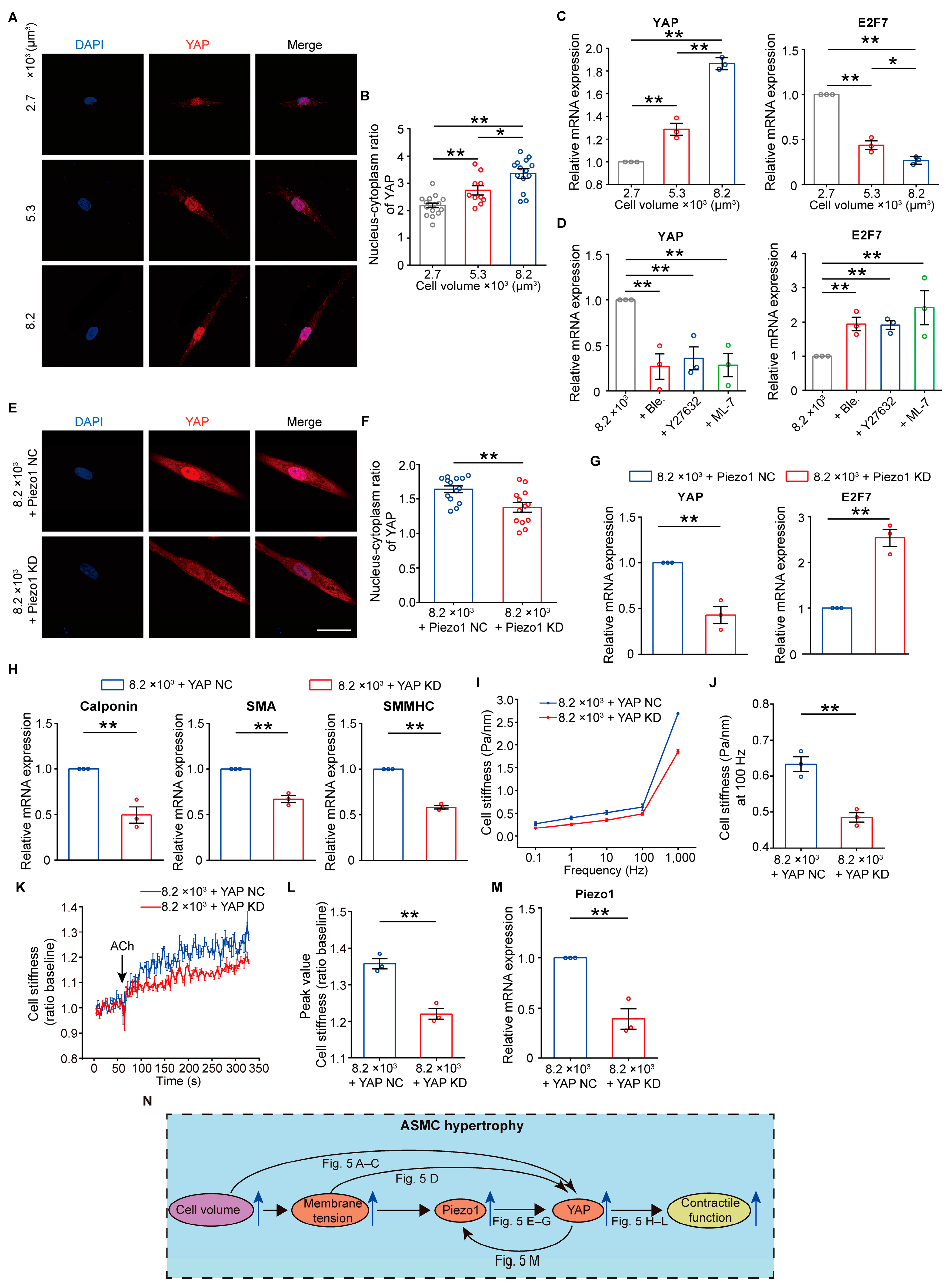 Ni, K.; Che, B.; Gu, R.; Wang, C.; Pan, Y.; Li, J.; Liu, L.; Luo, M.; Deng, L. Single-Cell Hypertrophy Promotes Contractile Function of Cultured Human Airway Smooth Muscle Cells via Piezo1 and YAP Auto-Regulation. Cells 2024, 13, 1697. https://doi.org/10.3390/cells13201697