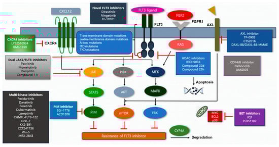 Therefore, strategies to overcome resistance mediated by secondary FLT3 mutations are required. This review provides a summary of FLT3 inhibitor resistance mechanisms and discusses various approaches to overcome such resistance in AML.
