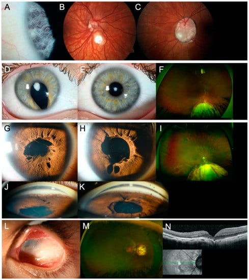 - Chang, L.; Blain, D.; Bertuzzi, S.; Brooks, B.P. Uveal coloboma: Clinical and basic science update. Curr. Opin. Ophthalmol. 2006, 17, 447–470. [Google Scholar] [CrossRef] [PubMed]
