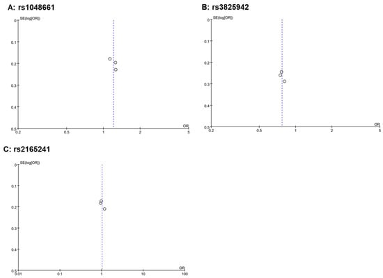 To evaluate potential publication bias, we constructed funnel plots [,,]. Sensitivity analyses were also performed to verify the robustness of the associations. This involved sequentially excluding studies—those deviating from HWE, or those deemed of suboptimal quality—to assess the impact on the overall results.