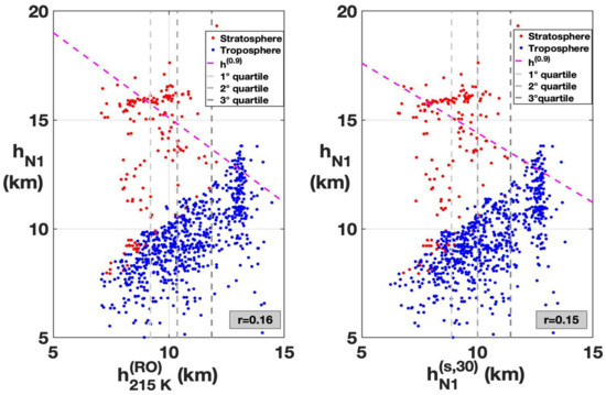 In our study we tested Kursinski’s hypothesis, together with additional threshold temperatures. In particular, we will compare the previously defined altitudes ,  and  of Equations (4) and (5), respectively, with