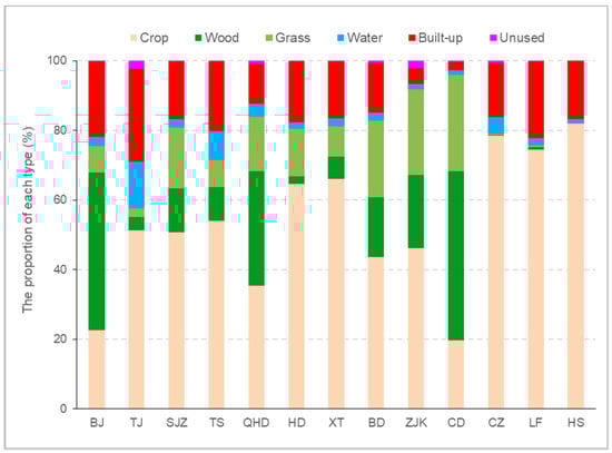 Land-type composition over Jing-Jin-Ji region at the city level in 2020.