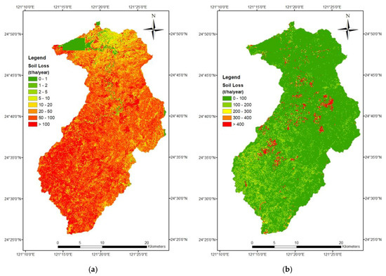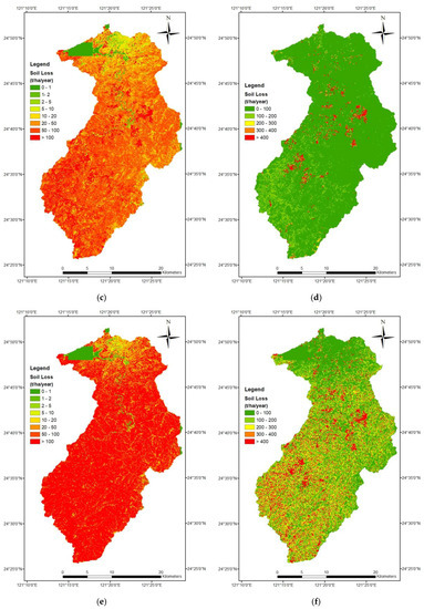 Soil erosion is the detachment of soil particles occurring in a landscape. Compared with wind erosion, water erosion is a much more critical process that produces enormous sediments in Taiwan’s watersheds. There are many factors that contribute to the high soil erosion rate of Taiwan. The first and foremost is Taiwan’s hilly topography. Situated at the collision boundary of the continental Eurasian plate and the Philippine Sea plate, the mountain range of Taiwan is being lifted at a rate of 0.2–18.5 mm yr−1 [1], which creates some of the most rugged terrain in East Asia. The second problem is Taiwan’s thick soil deposits due to heavy weathering as a consequence of the island’s tropical to subtropical weather. Finally, the last problem that exacerbates the soil erosion conditions in Taiwan is the heavy rain brought by monsoons and typhoons. Due to the amount and intensity of the rainfall, the rainfall erosivity value of Taiwan is many times higher than the global average obtained by Borrelli et al. [2], making water erosion a very serious concern in Taiwan. In fact, not just in Taiwan, the concern of soil erosion has been evident in many published studies in different parts of the world, including Europe [3,4], the US and Mexico [5,6], mainland China [7,8], India [9,10], Africa [11,12], Australia [13,14], etc. A steady increase in the number of studies on soil erosion in the last few years has also prompted a few regional and global studies that provide a bigger picture of the emerging crisis [2,15,16,17]. If we factor in the threat of climate change, we will likely face more intense precipitation occurring at a higher frequency in the near future. In order to be prepared for the possible global increase in soil erosion, studying existing high soil erosion areas such as Taiwan’s watersheds may provide insights into a preventive measure against a massive increase of global soil loss.