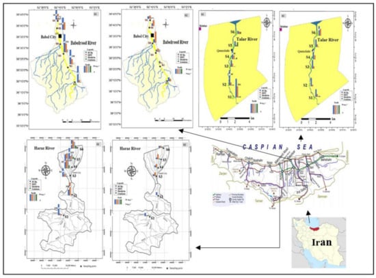 This study was conducted along the Haraz, Talar and Babolrood Rivers in north of Iran (Figure 1).