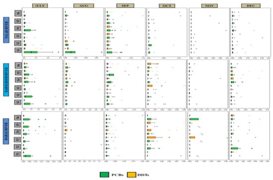 Widespread use of chemicals and industrial development during the twentieth century are the major sources for many chemical pollutants to enter the environment []. Owing to the ubiquity, toxicity and competency to bio-accumulate and bio-magnify, elucidation of dominant persistent organic pollutants (POPs), viz. polychlorinated biphenyls (PCBs) and organochlorine pesticides (OCPs), are of utmost importance [,].