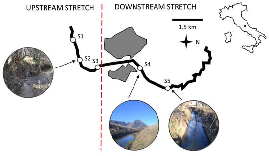 The following supporting information can be downloaded at: https://www.mdpi.com/article/10.3390/w14182934/s1, Table S1: Mean and standard deviation of the environmental variables measured in the up- and downstream stretches of the Rio Gamberale (Italy).