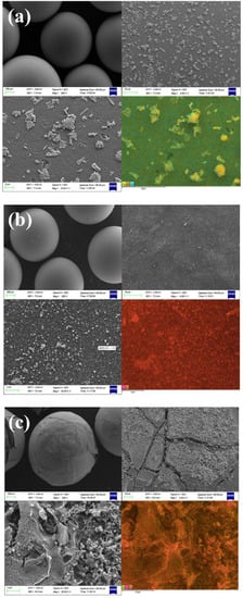 SEM and related EDS element layered images of D001CB (a); Co/D001CB (c); and N-Co/D001CB (c).