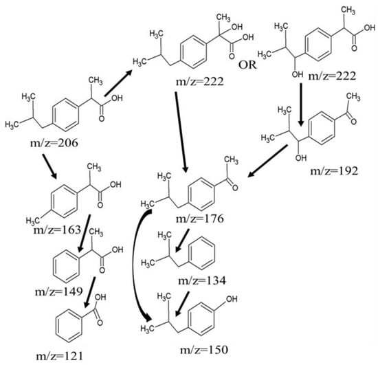 Possible degradation path of IBU in this reaction.