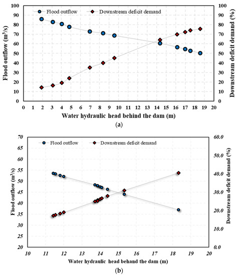 | Outlet/Weir Type | Water Hydraulic Head behind the Dam (m) | Outlet/Weir Characteristics |