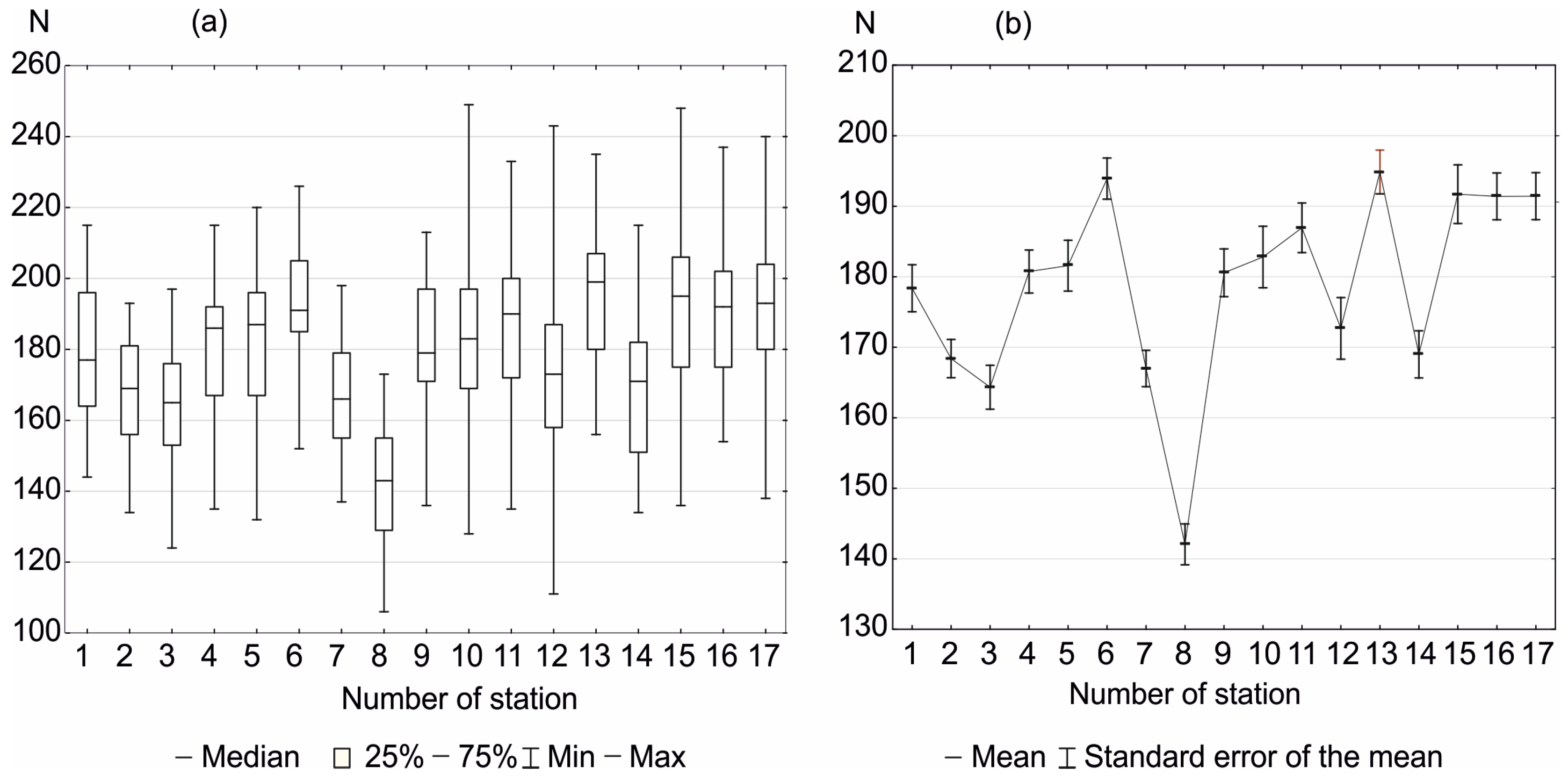 - Walanus, A.; Cebulska, M.; Twardosz, R. Long-term variability pattern of monthly and annual atmospheric precipitation in the Polish Carpathian Mountains and their foreland (1881–2018). Pure Appl. Geophys. 2021, 178, 633–650. [Google Scholar] [CrossRef]