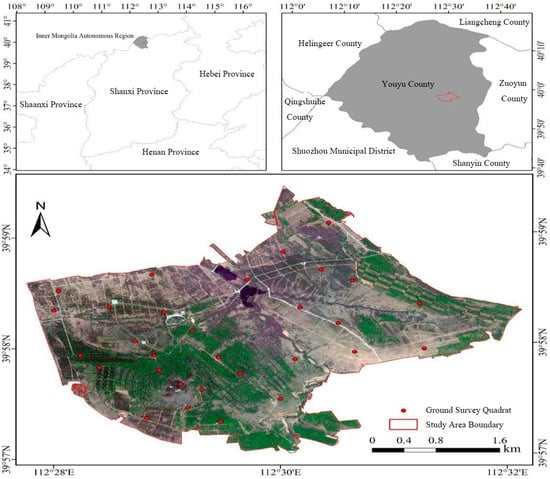The Xiaonanshan Mountain small watershed is a typical area of the Loess Hilly Gently Slope Aeolian Sand Region, characterized by a typical semi-arid continental monsoon climate. It is located 2 km south of Youyu County in Shanxi Province, bordered to the north by the Sandao River, to the east by the Pangjiabao River, and to the south by a clear spring that flows continuously throughout the year. To the west, it is adjacent to the state-owned Liangjia Oil Workshop Forest Farm. The watershed covers an area of 13.79 km2, featuring rounded mountain formations, with an elevation of 1519 m, a perimeter of 4 km, and a relative height difference of approximately 200 m.
