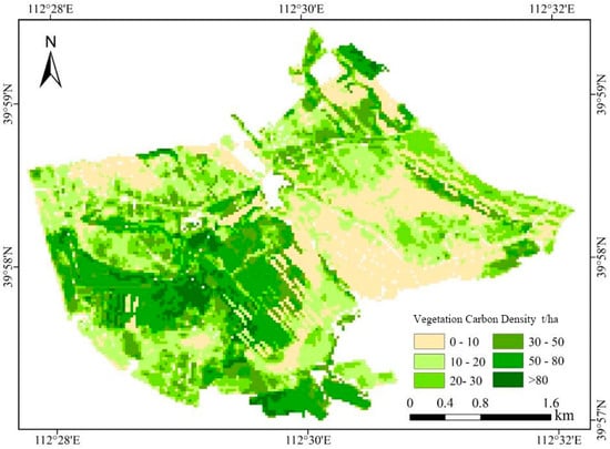 On this basis, further quantitative assessment of vegetation carbon storage for 2024 can be conducted. By applying the model results, the estimated results of vegetation carbon storage are illustrated in the following figure (Figure 4).