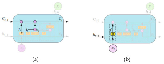 The core of the LSTM is the memory block, which includes three gate structures and a memory cell. Specifically, it consists of the cell state, forget gate, input gate, and output gate [47,48,49]. The LSTM gating mechanism is shown in Figure 2. Due to the presence of gate mechanisms in the LSTM network, the memory cell can capture crucial information at a certain moment and retain this critical information for a certain period.