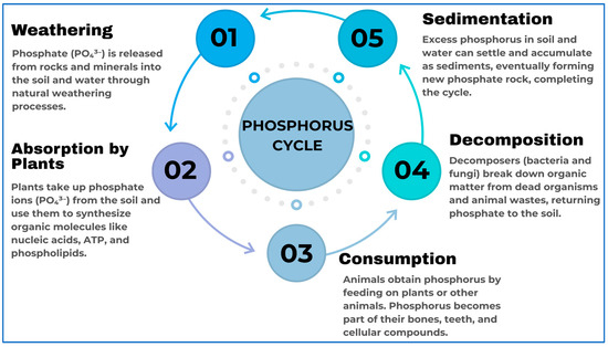 The remediation of phosphorus in constructed wetlands is mediated by abiotic and biotic processes in which microbial communities directly contribute to phosphorus transformation, immobilisation and cycling []. Phosphorus does not have a gaseous phase under environmental conditions, unlike nitrogen, making its permanent removal much more complicated and management more complex []. Phosphorus is removed biologically via phosphorus-accumulating organisms that take up phosphorus and store it as polyphosphate granules under alternating anaerobic and aerobic conditions []. This cyclical phosphorus absorption and discharge at the cellular level is mainly carried out by specific Proteobacteria phyla, with important genera including Candidatus Accumulibacter, Tetrasphaera, and some Gamma-proteobacteria, which play crucial roles in enhanced biological phosphorus removal processes.