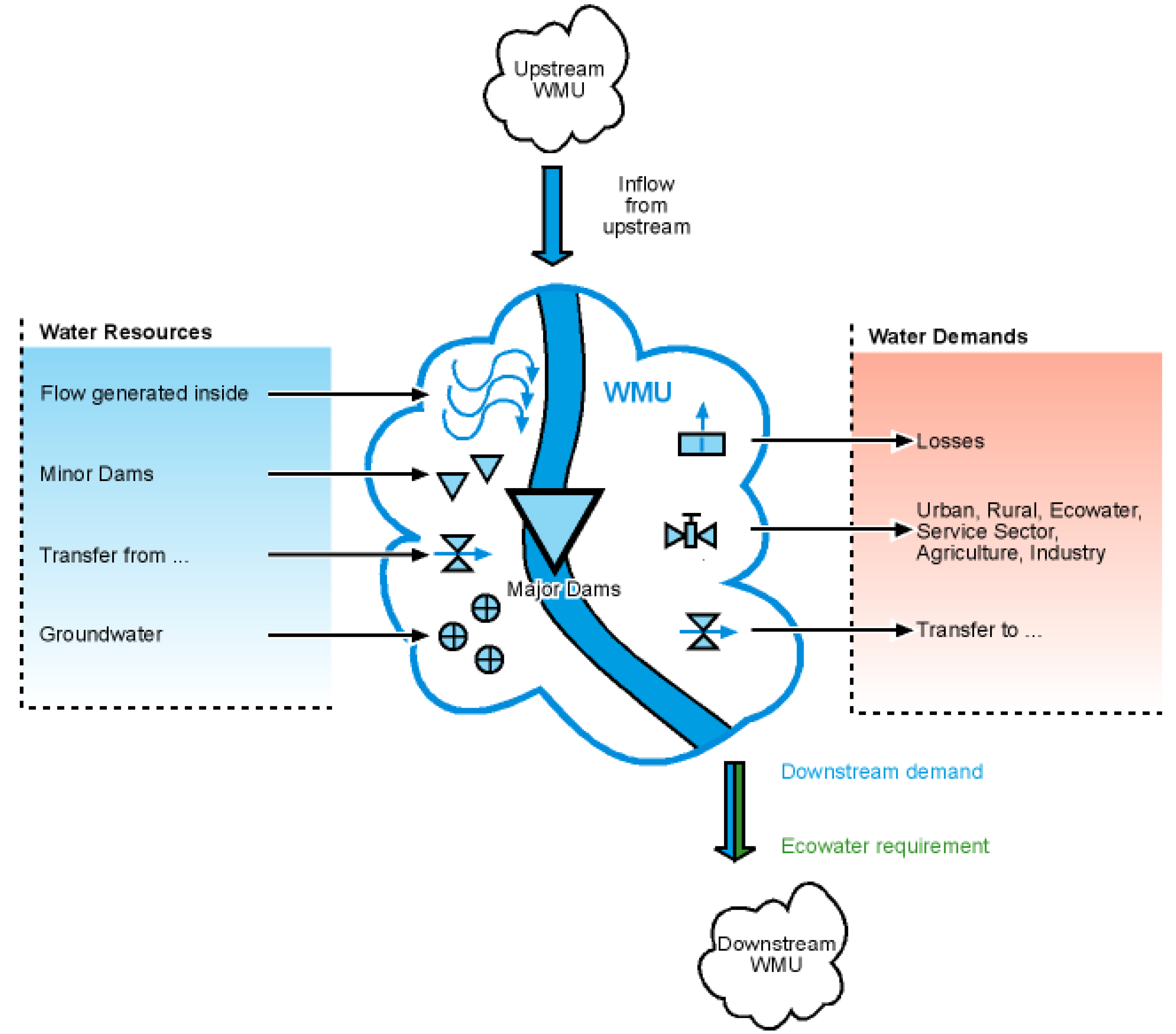 The water demand within a WMU consists of the following five sectors:
