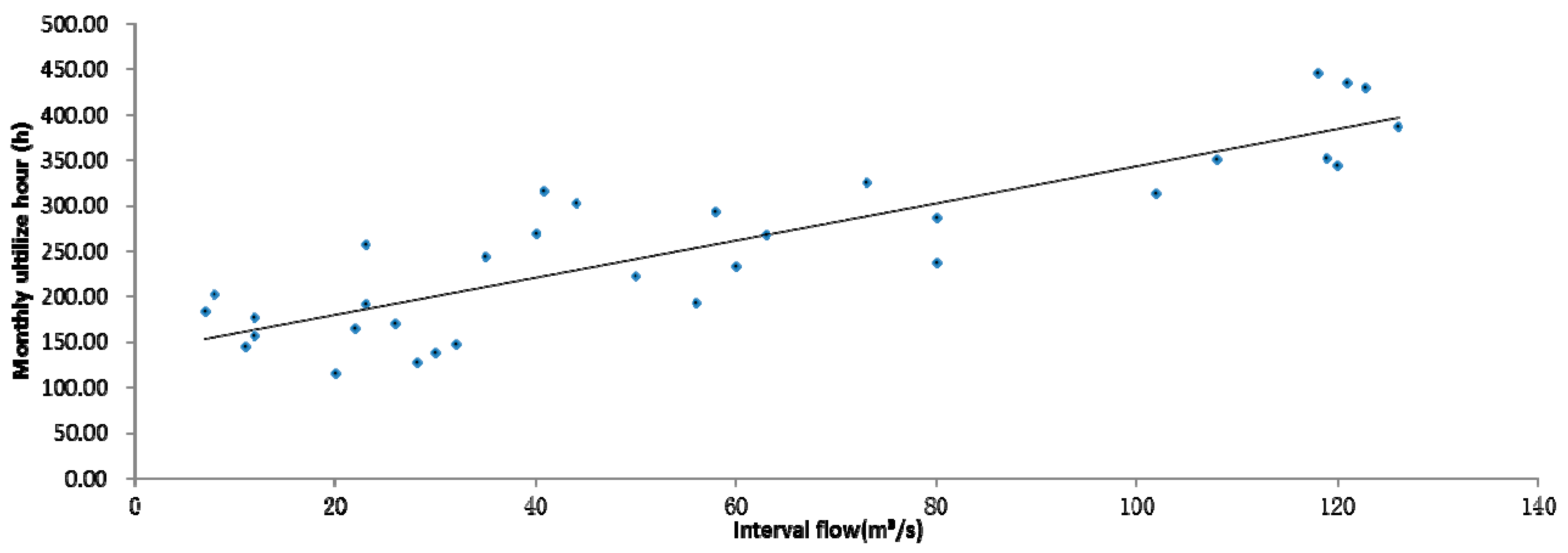 Considering dynamic operations and the constant changes of the installed capacity, the monthly utilization hour of the SHP plant is used to replace the power production in analyzing the correlation. The monthly utilization hour is as follows: