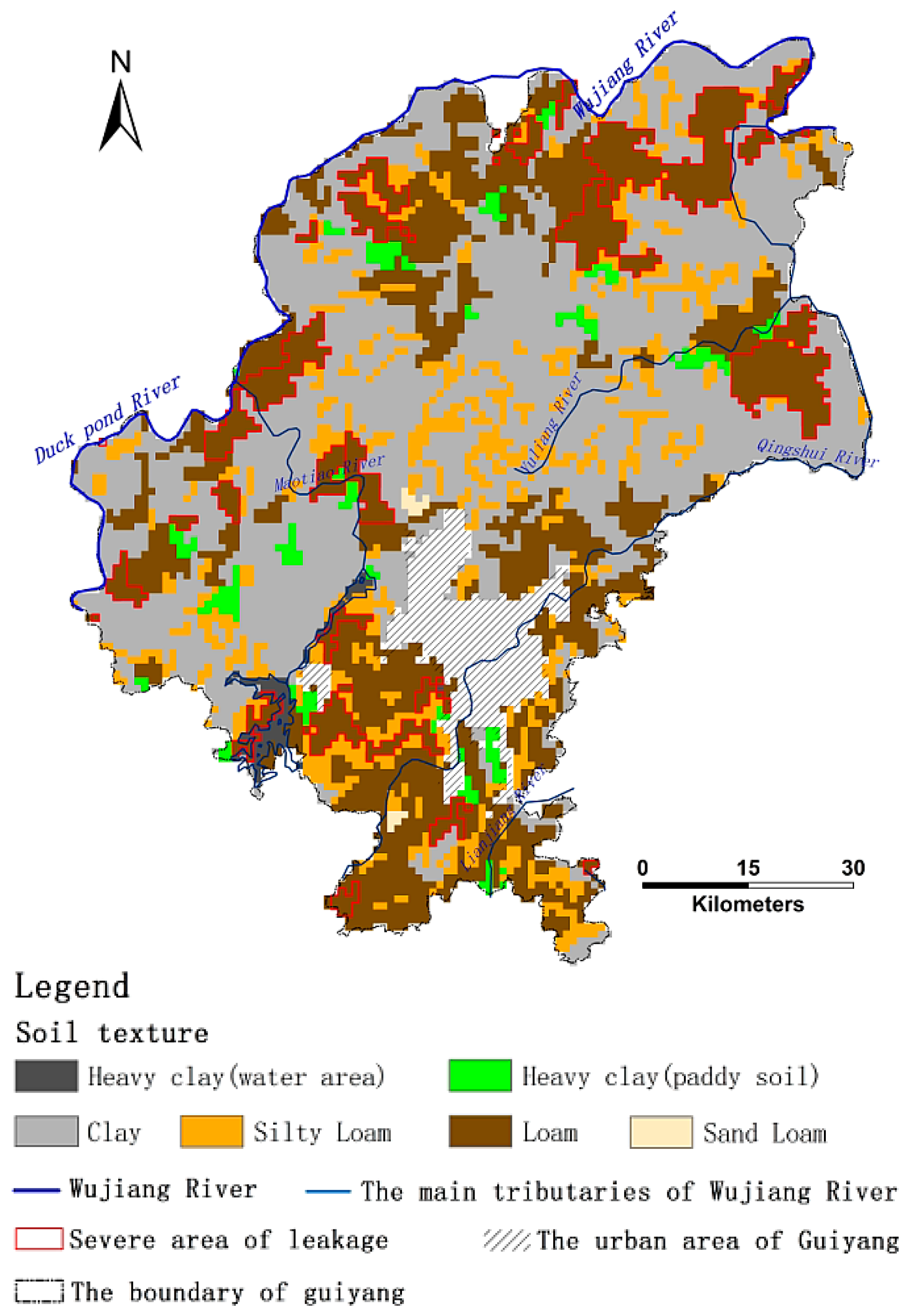 The distribution of soil texture in the environs of Guiyang.